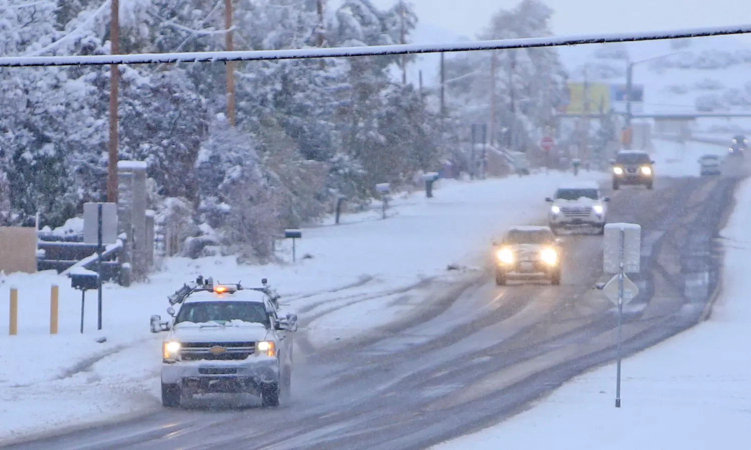 The National Weather Service Weather Prediction Center said extensive and widespread disruptions could be expected as the storm moves through New Mexico and Colorado, dropping between 1 and 2 inches (5 centimeters) of snow within an hour in some spots.