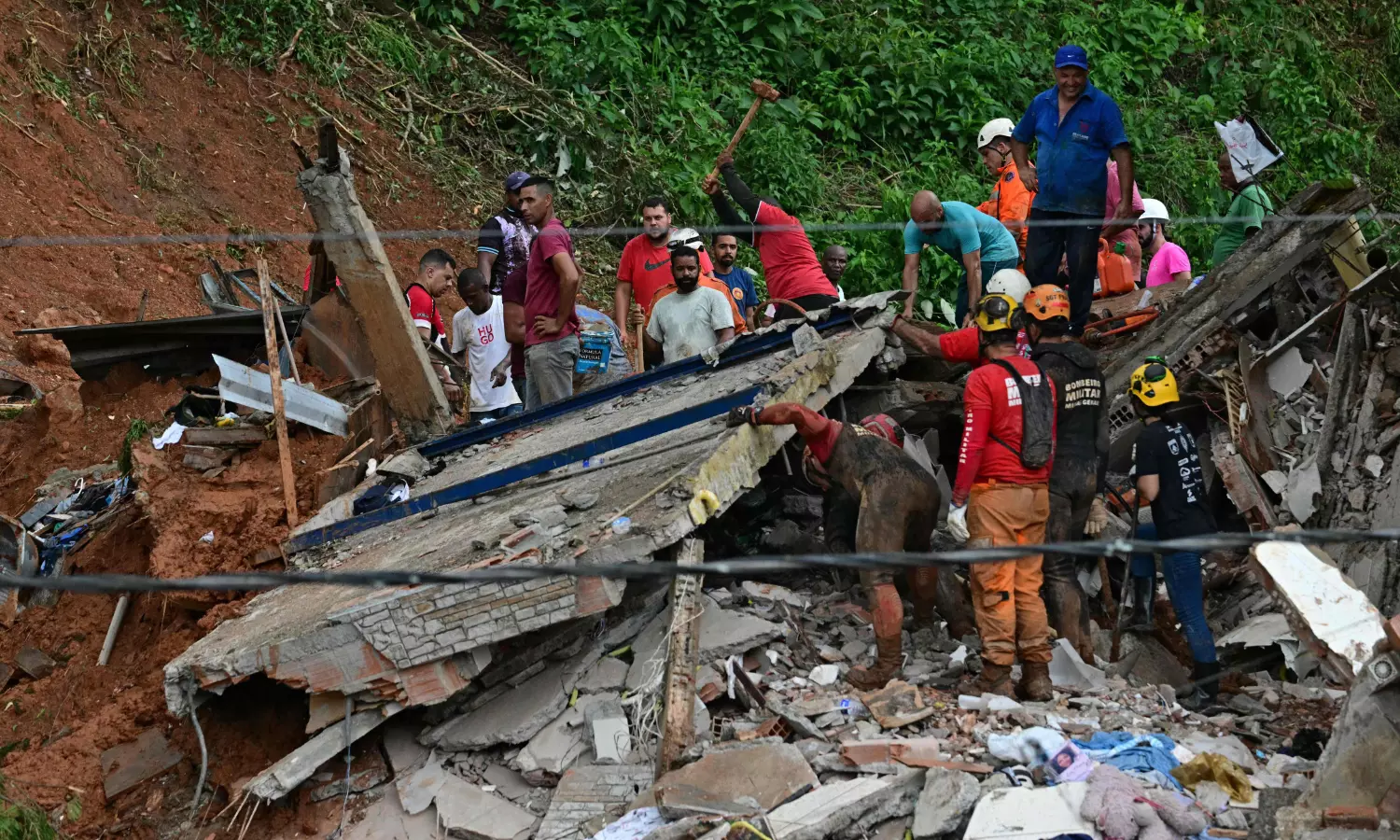 JUIZ DE FORA, Brazil: Three firemen pulled a man's body from the mud amidst the rubble of houses swept away in a landslide in southeastern Brazil, where 30 people died and 39 were still missing on Tuesday after torrential rains.