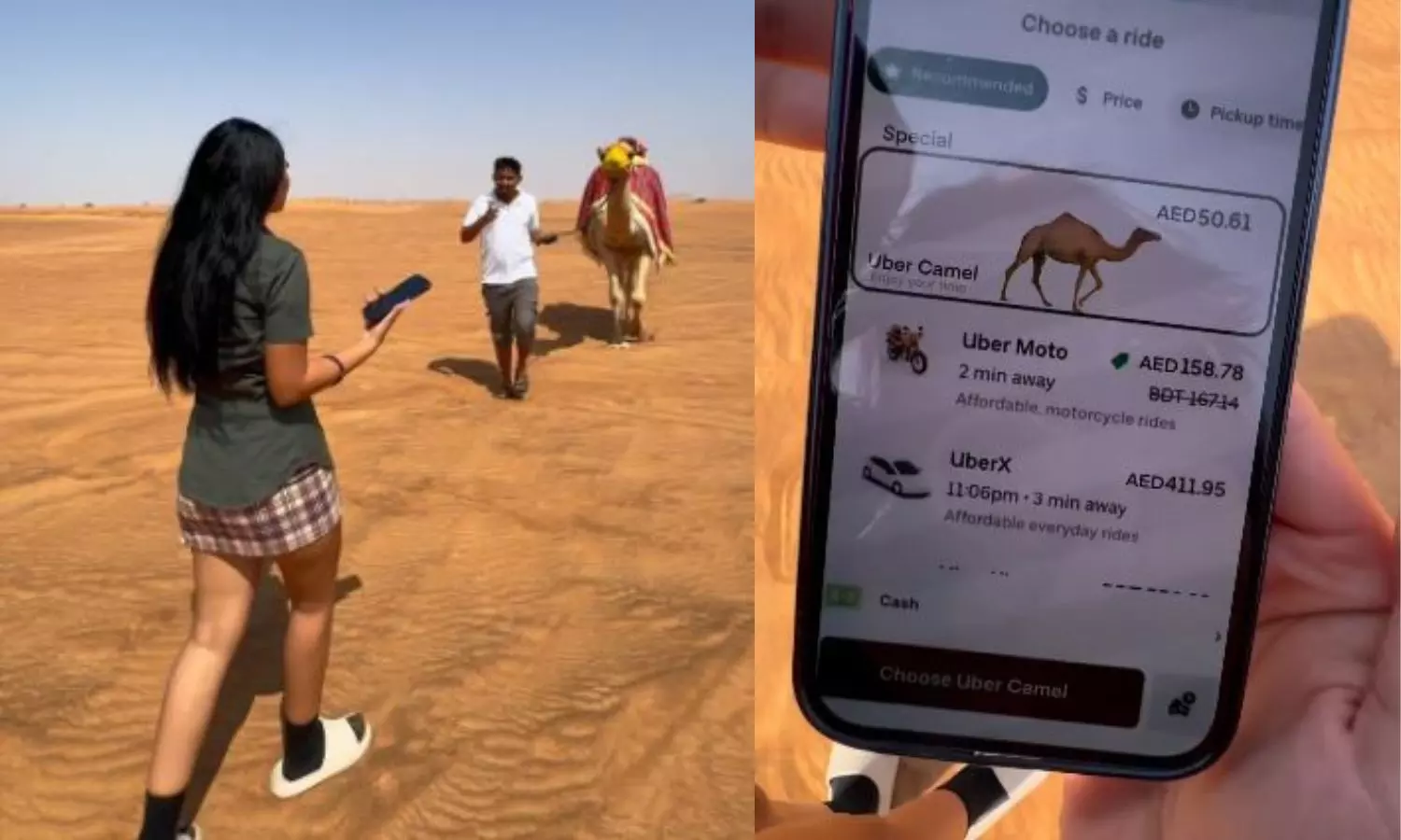 An amusing video is making rounds on Instagram where two women lost in the desert book Uber Camel for their way back.