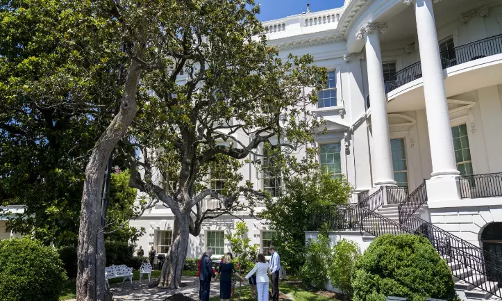 A tree that's nearly two centuries old will be removed from the White House grounds because it's deteriorating, President Donald Trump said Sunday. The southern magnolia stands near the curved portico on the south side of the building. It's where foreign leaders are often welcomed for ceremonial visits, and where the president departs to board the Marine One helicopter.