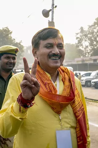 BJP candidate Suresh Awasthi visits a counting center amid the counting of votes for the Sisamau Assembly byelection, in Kanpur, Saturday. — PTI