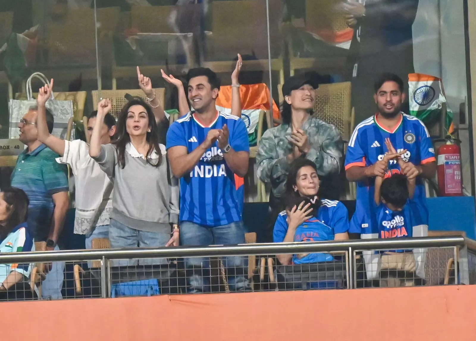 Nita Ambani, Akash Ambani and Sloka Ambani, Ranbir Kapoor and Alia Bhatt with daughter Raha, Anil Kapoor, and Varun Dhawan all out in force for India's T20 World Cup semifinal.