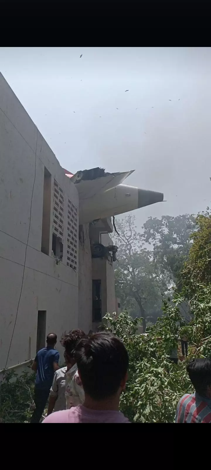The front section of the Air India plane that crashed after takeoff from Ahmedabad fell on the roof of BJ Medical College's resident doctors' hostel. The incident caused significant damage and chaos.