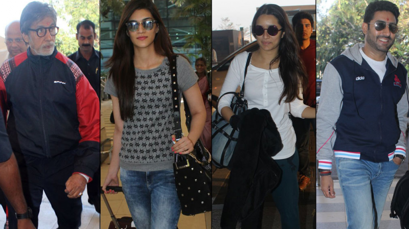 Amitabh, Abhishek, Kriti and Shraddha all smiles at the airport