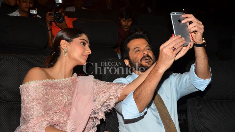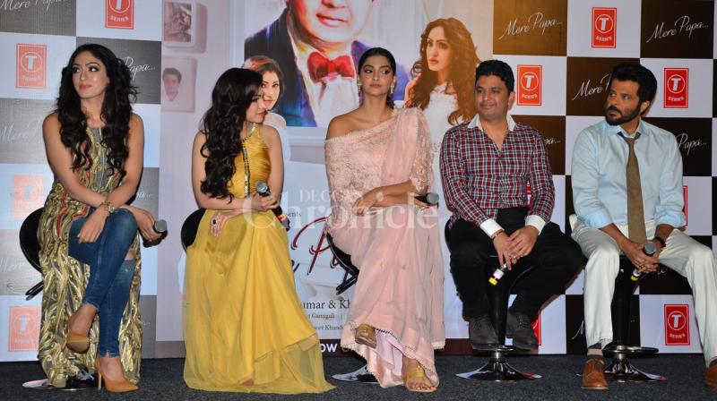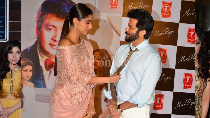 Anil Kapoor and his beautiful Sonam Kapoor launched ‘Mere Papa’ song by Gulshan Kumar’s daughters Tulsi and Khushali Kumar. The song was sung live by Tulsi Kumar earlier at the show ‘Suron Ke Rang’ held in 2015. Photo: Viral Bhayani