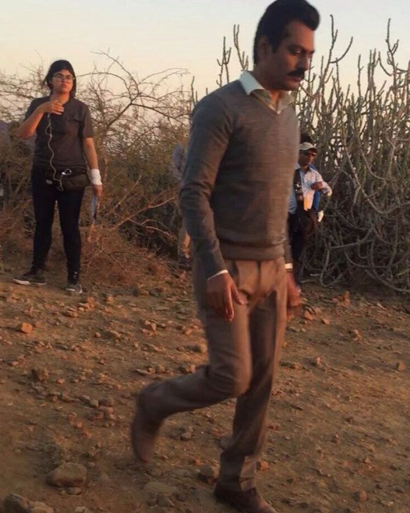 Nawazuddin Siddiqui, who reportedly plays the role of a cop in Raees', was photographed on the sets in a sweater and brown pants.