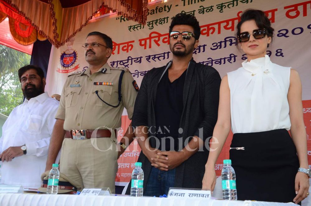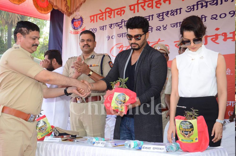 Bollywood stars Kangana Ranaut and Arjun Kapoor attended a road safety campaign organised by the police. Photo: Viral Bhayani