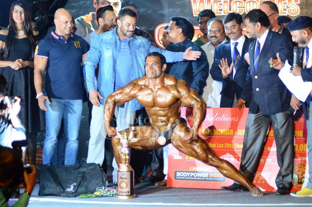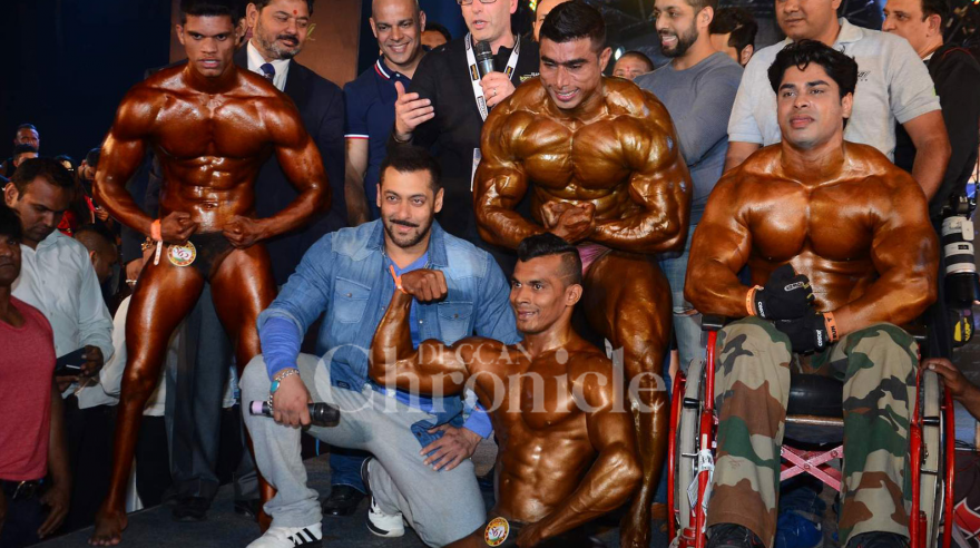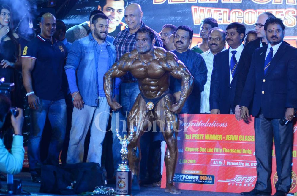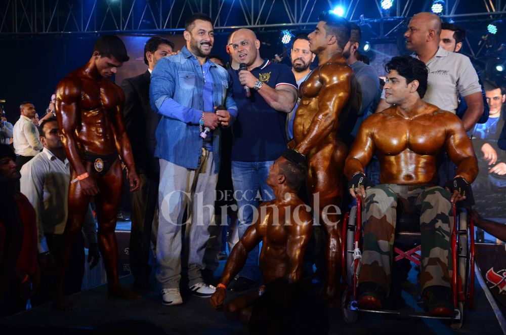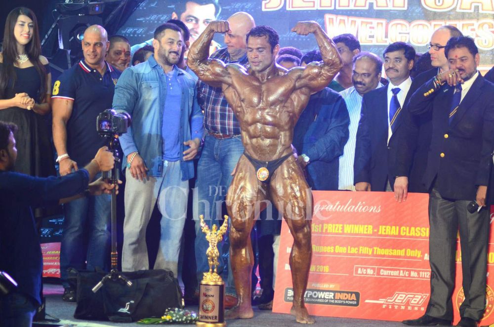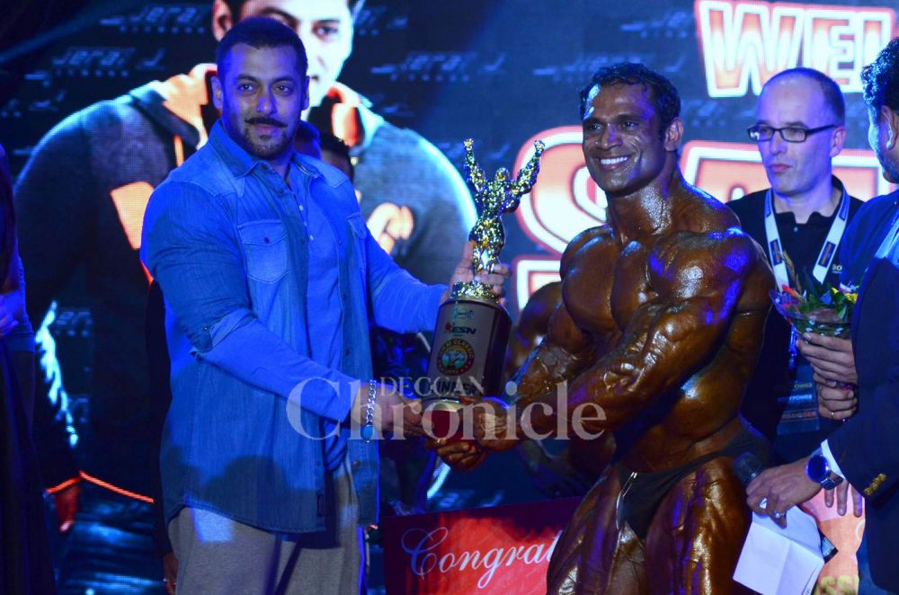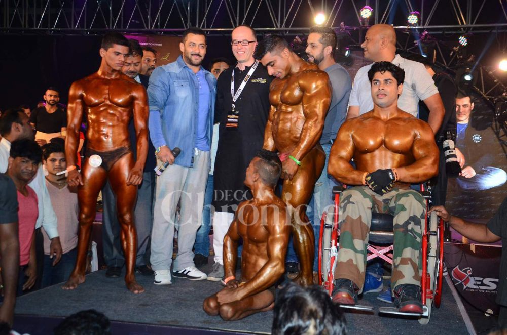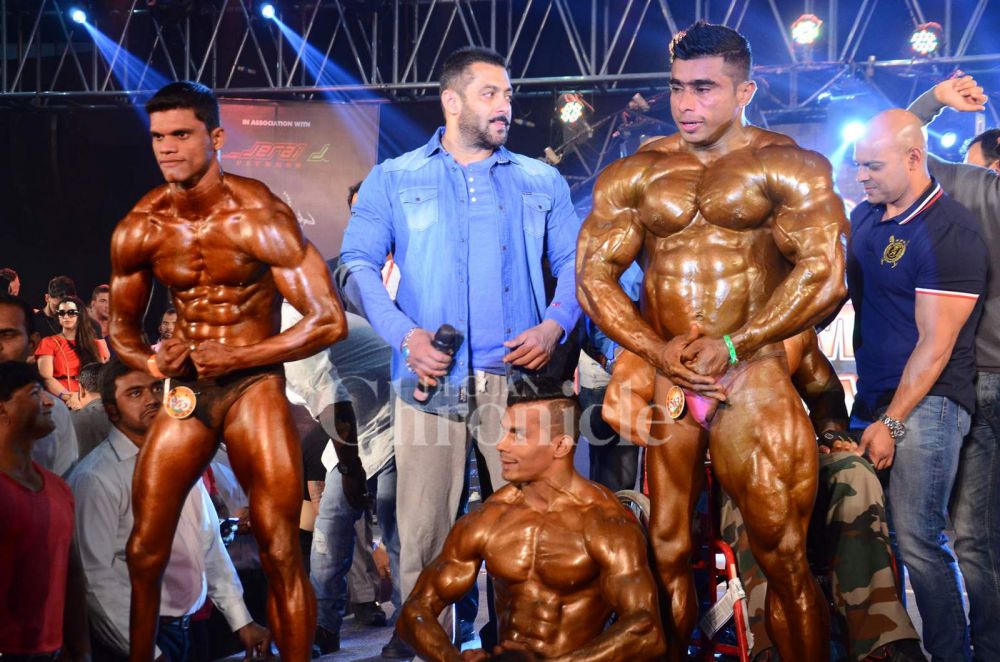The actor, who has been trying hard to build up muscle for his film, was given the honours of crowning the winner of the competition.