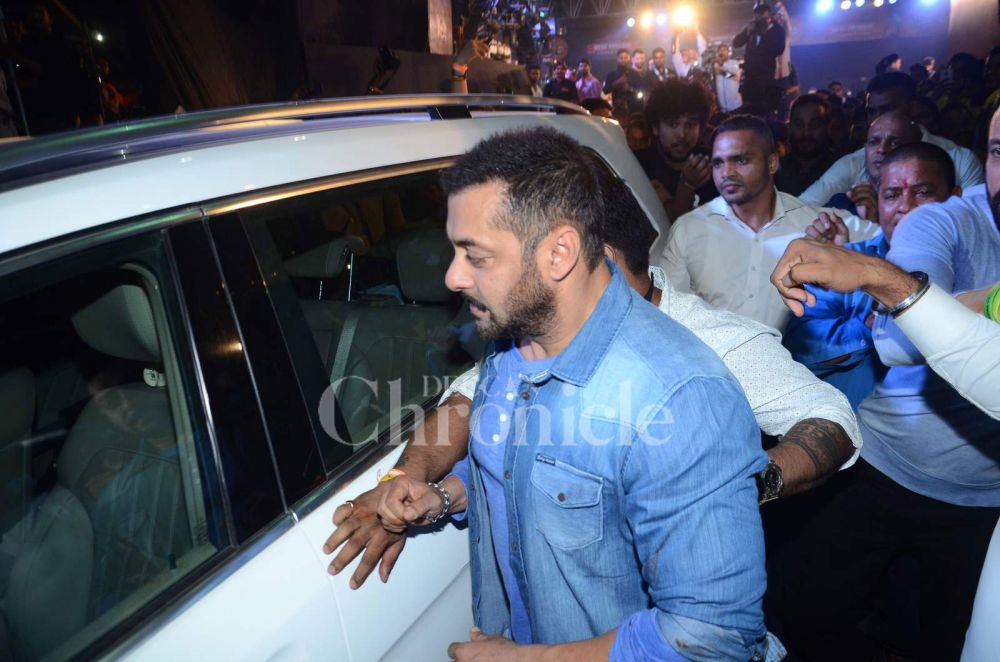 A number of bodyguards escorted Salman to his white SUV and cleared the way for him to drive through.