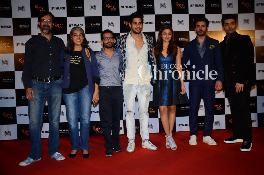 On February 10, Bollywood stars Alia Bhatt, Sidharth Malhotra, Fawad Khan and Karan Johar unveiled their upcoming film \'Kapoor and Sons\' first official trailer. (Photo: Viral Bhayani)