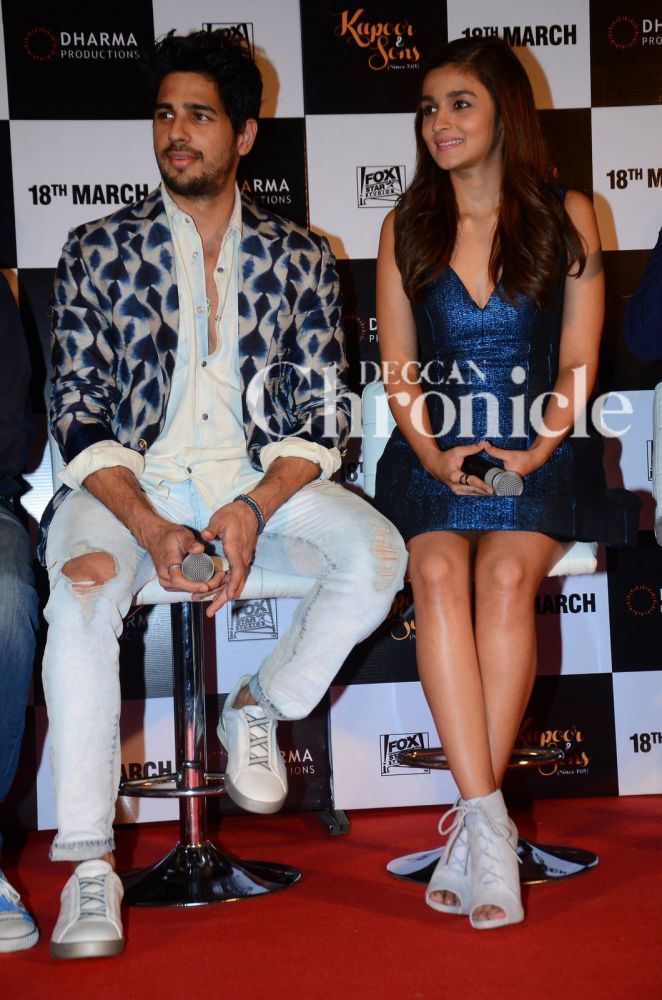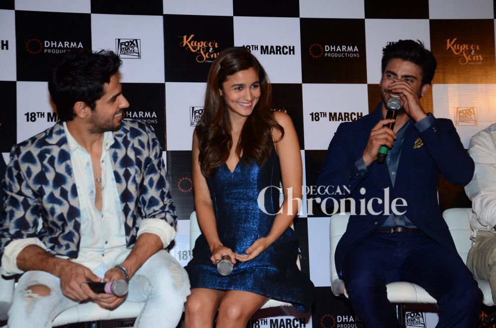Bollywood stars Alia Bhatt, Sidharth Malhotra, Fawad Khan and Karan Johar unveiled their upcoming film 'Kapoor and Sons' first officia