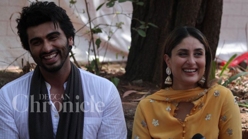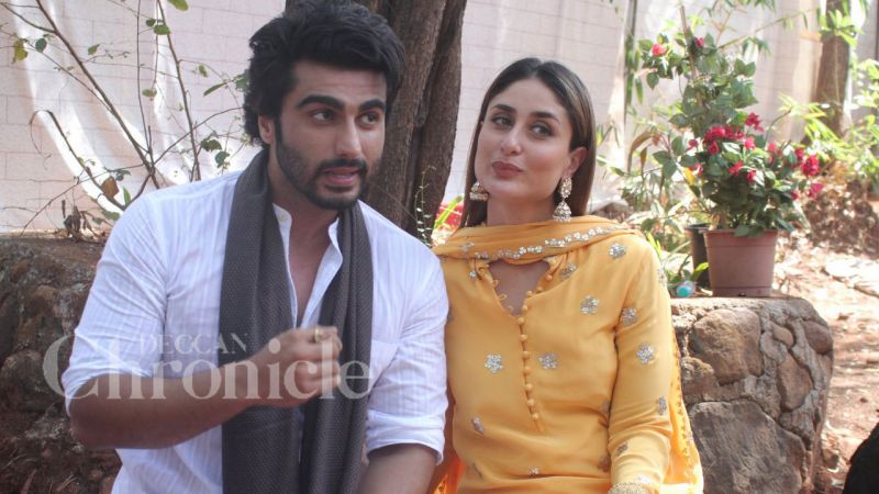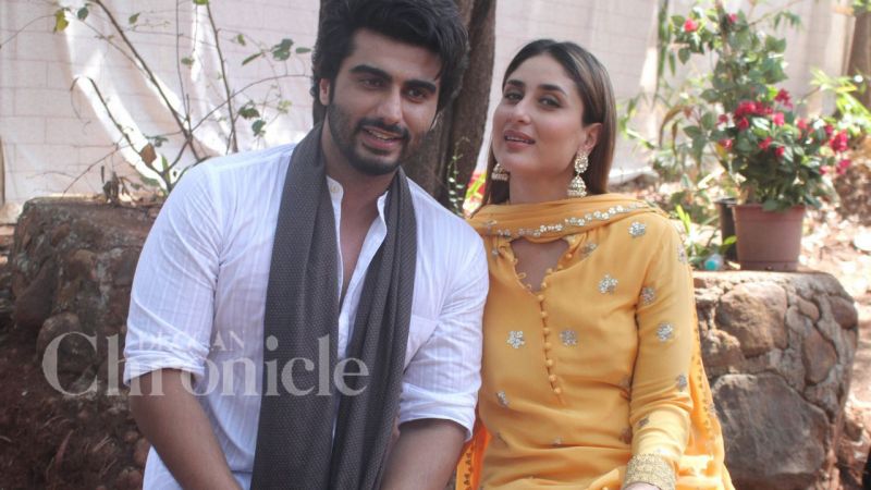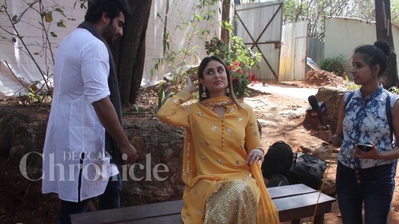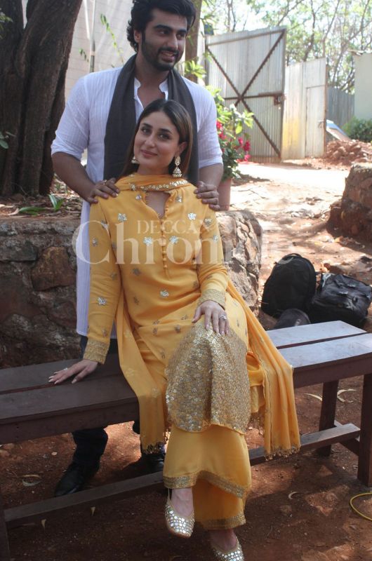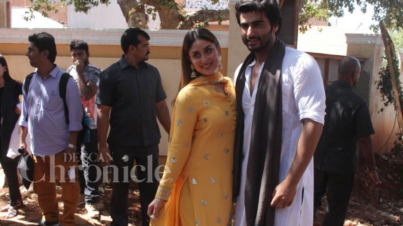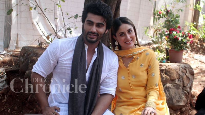Arjun Kapoor and co-star Kareena Kapoor Khan were photographed on the sets of TV show Thapki Pyaar Ki, promoting their film Ki and Ka. Photo: Viral Bhayani