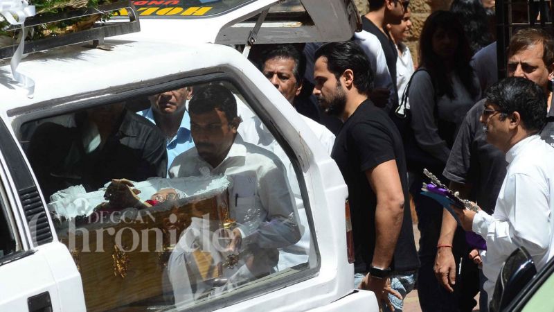 Bollywood actor Emraan Hashmi was joined by producer Mahesh Bahtt and actress Dia Mirza at the funeral of his mother Maherahh Hashmi.