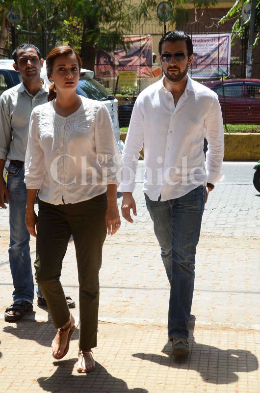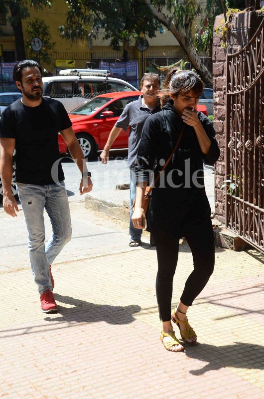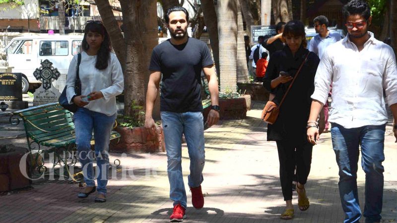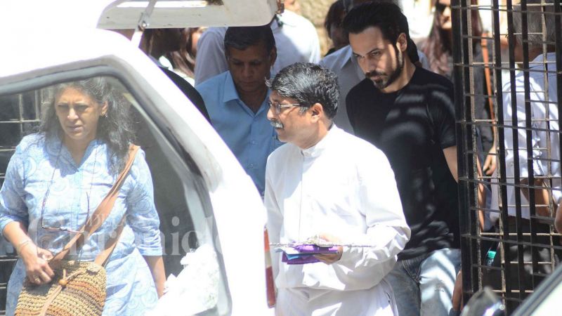 Bollywood actor Emraan Hashmi was joined by producer Mahesh Bahtt and actress Dia Mirza at the funeral ceremony of his mother Maherahh Hashmi, who succumbed to caner on Friday, March 11. Photo: Viral Bhayani