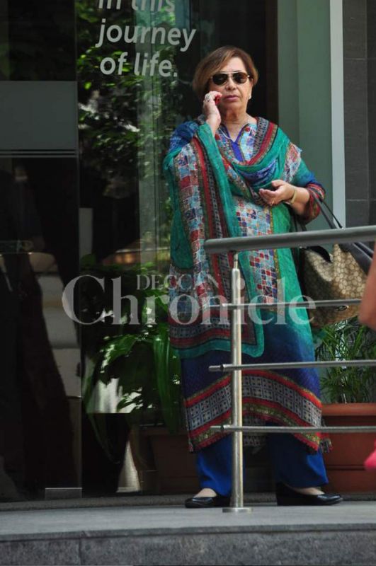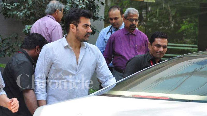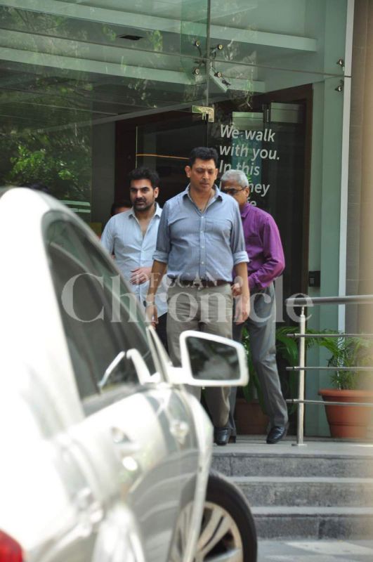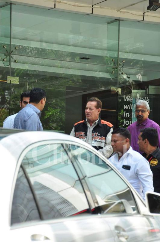 The entire Khan family- Salman, Arbaaz, Sohail, Salim, Helen, Selma and Malaika arrived at the hospital this morning to pay new parents Arpita and Aayush a visit. Photo: Viral Bhayani