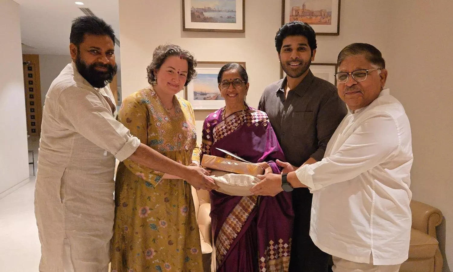 Continuing the invitations, Allu Aravind’s family also visited Andhra Pradesh Deputy Chief Minister Pawan Kalyan and his wife Anna Lezhneva. Images of the meeting are currently making the rounds online.
