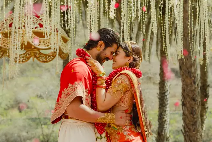 For her D-Day, Rashmika wore a stunning rust-hued saree by Anamika Khanna. She adorned her outfit with heavy jewellery. Vijay donned a white dhoti and a matching dupatta. He also went heavy with gold jewellery and wore studs, a regal kamarbandh and a necklace. Since they shared the pictures, social media has been flooded with congratulatory messages. "Congratulations you guys," actor Neha Dhupia commented. "Awwww!!! Congratsssss Rashhuuu!! To both of you!! Wishing you guys a lifetime of happiness and love," actor Kriti Sanon commented. "Congrats guys!" actor Ishaan Khatter wrote. Rashmika and Vijay have shared screen space in two notable Telugu films, such as the 2018 romantic comedy blockbuster Geetha Govindam and the 2019 action drama Dear Comrade. They remained tight-lipped about their relationship until news of their wedding surfaced. Over the years, they have made very few public appearances together, choosing to keep their relationship largely private.