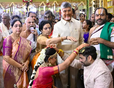 Among the distinguished attendees were Andhra Pradesh Chief Minister N. Chandrababu Naidu and Bhuvaneshwari, who blessed the newlyweds on their special day.