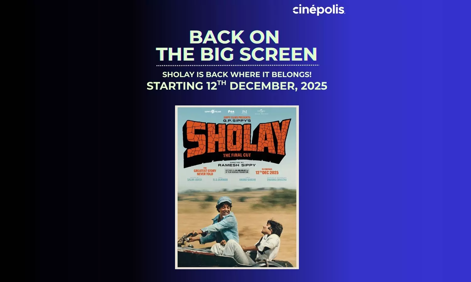 “Sholay occupies a very special place in the hearts of Indian audiences, and it is a privilege for Cinépolis to bring this landmark film back to cinemas for its Golden Jubilee. We are grateful to be part of this moment that allows families across generations to come together for a story that has shaped our culture for fifty years. We hope this brings back warm memories for many and creates new ones for those watching it for the first time.” Said; Devang Sampat, Managing Director, Cinépolis India.