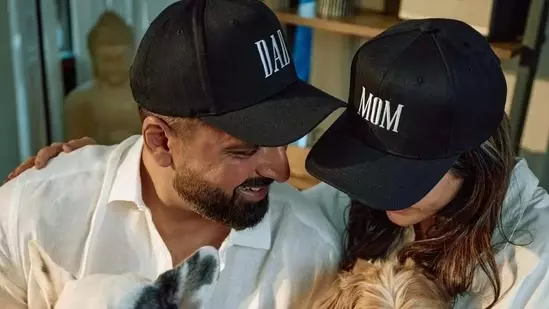 The first picture featured her and Bangera wearing caps with "Mom" and "Dad" written over them. Followed by pictures of the couple holding the infant's shoes.