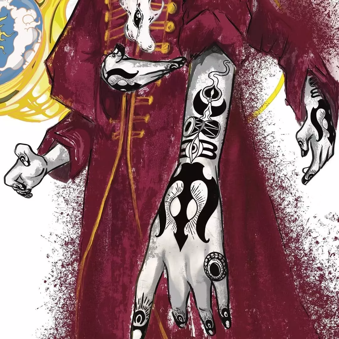 Executed by mehendi artist Sonam Istry, the design was unveiled during Rishab’s Mumbai performance. The collaboration also extends to an original artwork by Santanu, reimagining the musician through a mythological and modern lens.