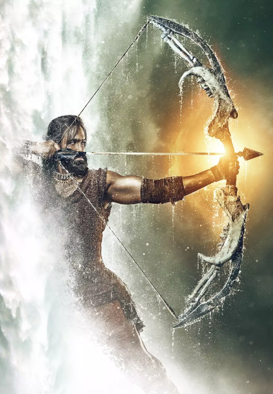 The first look poster features the formidable Vishnu Manchu, who takes on the role of Bhakta Kannappa with unparalleled charisma and intensity. In this stunning visual, Vishnu Manchu stands poised with a bow and arrow, emerging majestically from a waterfall, ready to unleash his prowess on his target. The image captures the essence of the action-packed sequences and hints at the profound devotion and determination that define the character of Bhakta Kannappa.
