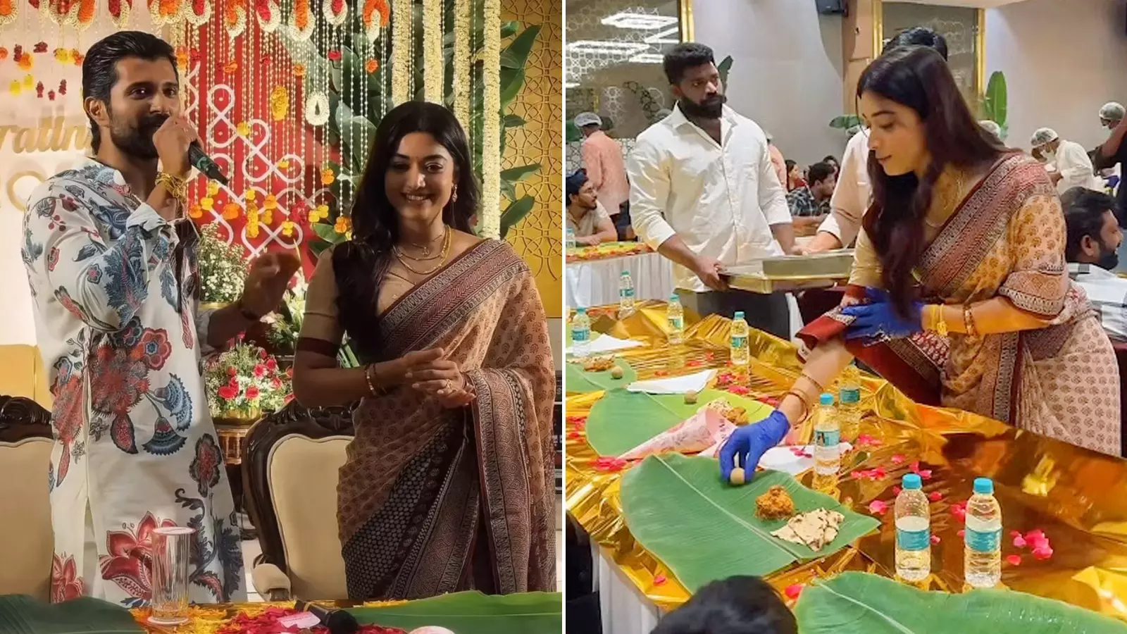 Fans erupted in cheers during a sweet moment when Rashmika was seen feeding Vijay. For the event, Rashmika opted for a simple, elegant saree, proudly sporting her mangalsutra and sindoor, while Vijay looked dapper in a floral kurta.