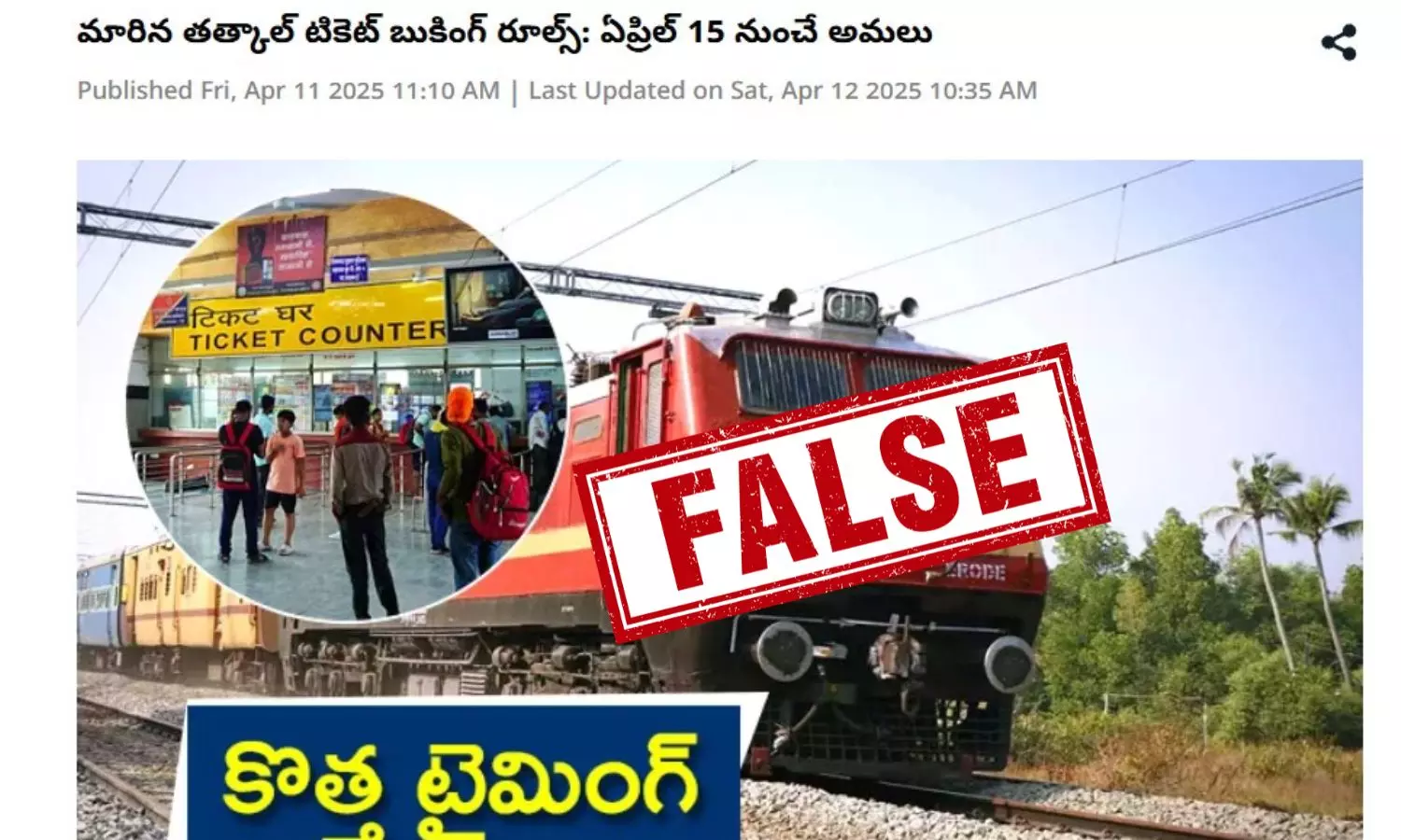 Claim: An article by a vernacular news website Sakshi.com and several social media posts claimed that Indian Railways has made changes to Tatkal and Premium Tatkal ticket booking timings, including modifications in the cancellation process and payment options.