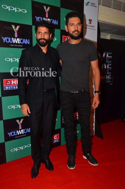 Bollywood biggies like Amitabh Bachchan, Kajol and Deepika Padukone joined cricketer Yuvraj Singh at the launch of his clothing label, You We Can. (Pic: Viral Bhayani)