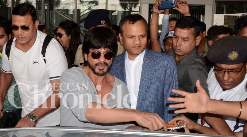 Bollywood star Shah Rukh Khan and his son AbRam, attended the ongoing IPL matches to cheer for their team Kolkata Knight Riders, as they took on Kings XI Punjab, at Eden Gardens on Wednesday. Photo: Twitter