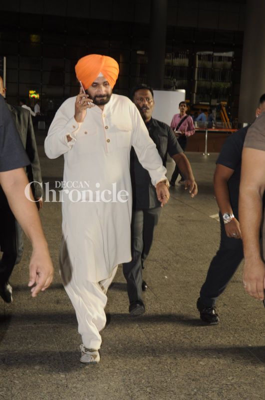 Navjot Singh Sidhu was spotted with his cluster of bodyguards in tow.