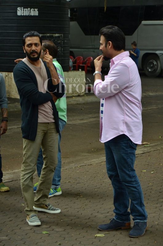 On Wednesday, Bandra\'s well-known Mehboob studio saw a lot of action as many Bollywood celebs like SRK, Riteish and others walked in and out of there. (Photo: Viral Bhayani)