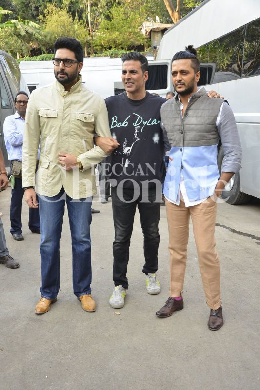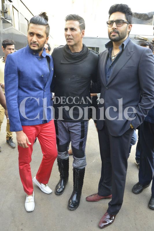 Akshay Kumar, Abhishek Bachchan and Riteish Deshmukh have kicked off their Housefull 3 film promotions.