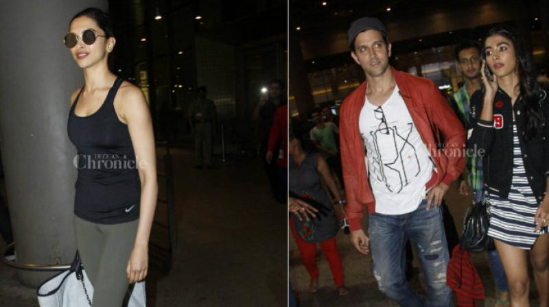 Deepika Padukone, Hrithik Roshan and Pooja Hegde spotted at the Mumbai airport.