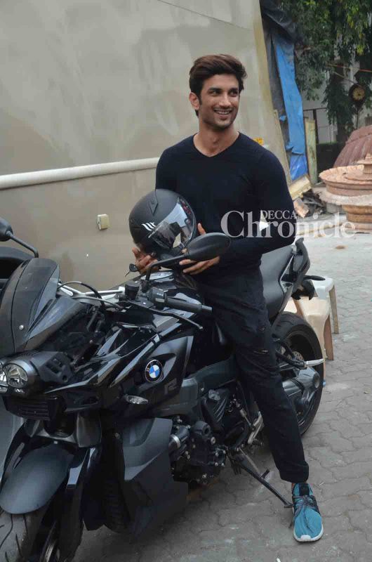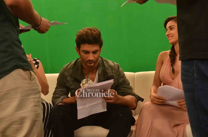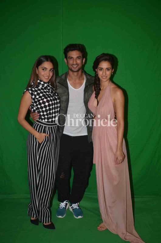 Sushant Singh Rajput shot for a promotional event with his \'M. S. Dhoni: The Untold Story\' co-stars Kiara Advani and Disha Patani on Tuesday. (Photo: Viral Bhayani)