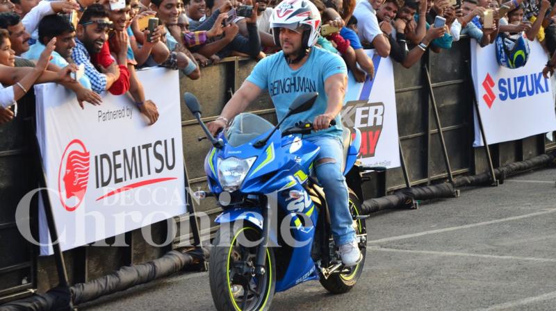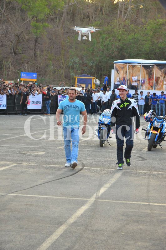 Salman Khan spent his Saturday evening zooming around at a stunt event in the city. Photo: Viral Bhayani