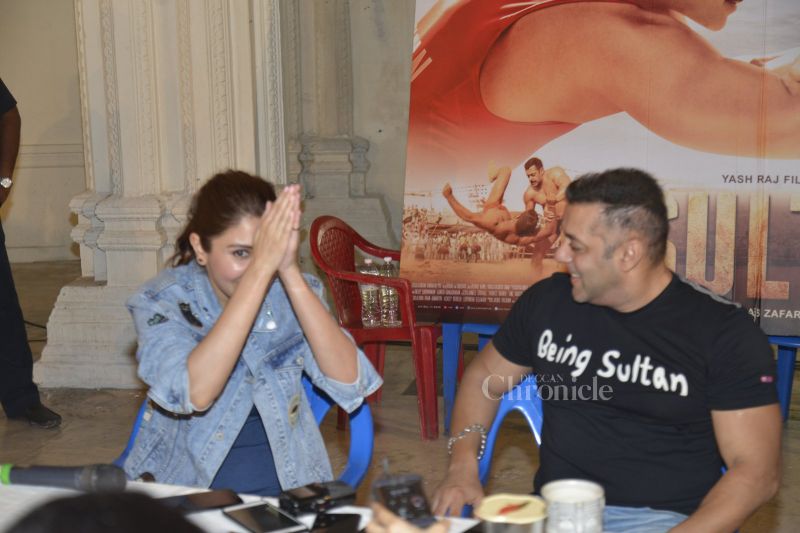 Salman Khan and Anushka Sharma addressed the media at Salman's farmhouse in Panvel.