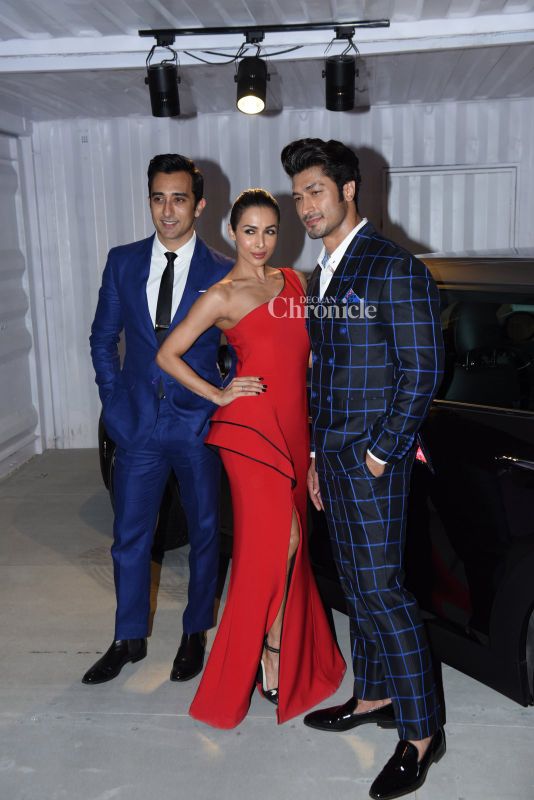 Malaika Arora Khan, Vidyut Jammwal and Rahul Khanna were snapped at the launch of a car in Mumbai on Thursday.