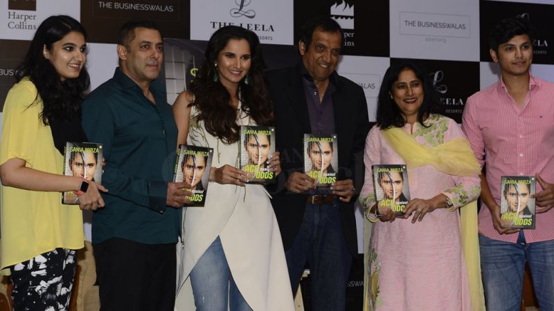 After Shah Rukh Khan and Parineeti Chopra, Salman Khan unveiled Sania Mirza's autobiography titled 'Ace against Odds' in Mumbai on July 17. Photo: Viral Bhayani