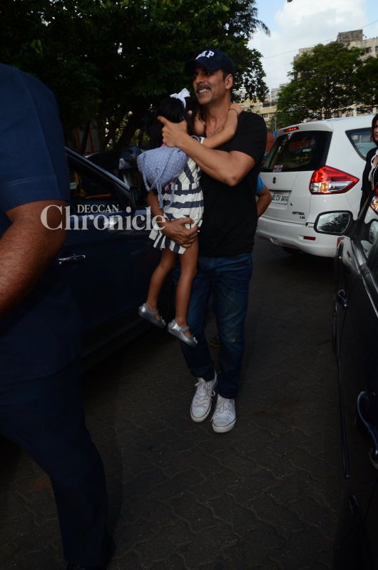 Akshay Kumar wa at his protective best when it came to daughter Nitara. (Pic: Viral Bhayani)