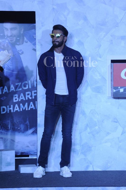 During a product launch in Mumbai on Monday, Ranveer Singh did what he does best, get everyone all pumped up with his energy.