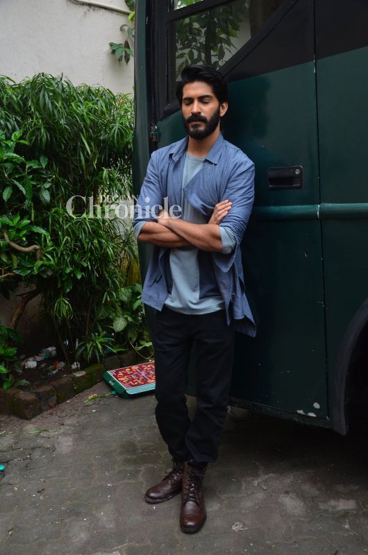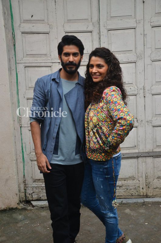 Harshvardhan Kapoor and Saiyami Kher, who would both be making their Bollywood debut in the Rakeysh Omprakash Mehra direced \'Mirzya,\' were snapped post an interview. (Pic: Viral Bhayani)