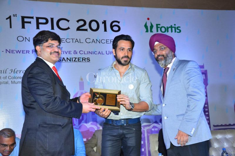 Emraan Hashmi gets felicitated at the press conference on colorectal cancer.