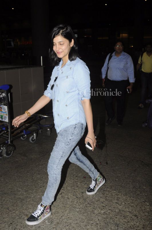 Shruti Hassan and Sonali Bendre spotted at the Mumbai airport. (Pic: Viral Bhayani)