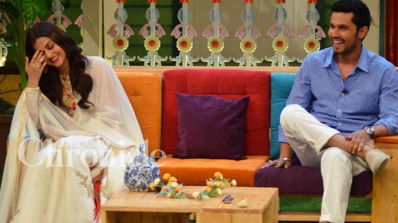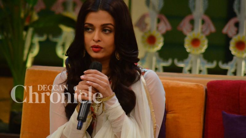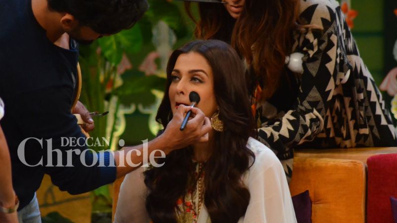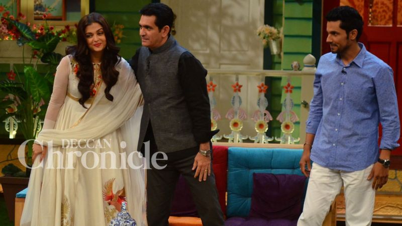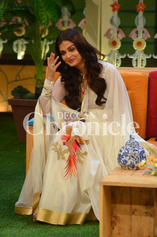 Aishwarya Rai Bachchan stopped by on the sets of Kapil Sharma\'s new comedy television show to promote her upcoming movie \'Sarbjit\'. Photo: Viral Bhayani