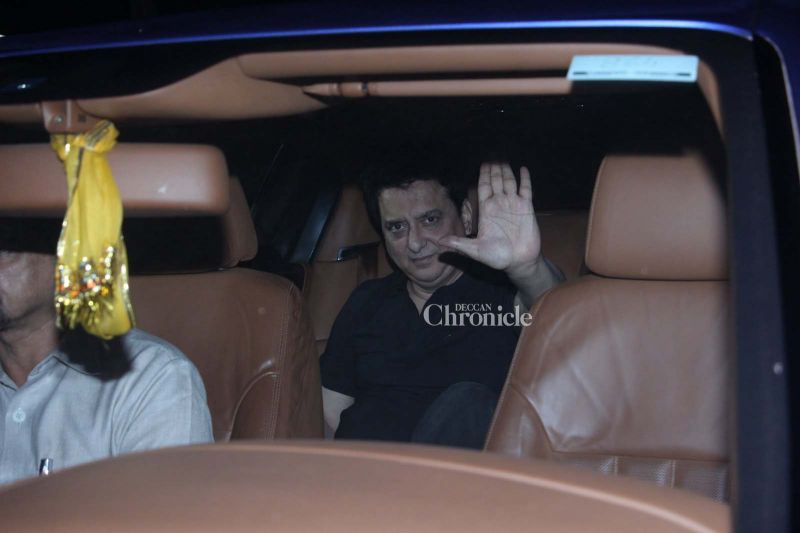 Shah Rukh Khan and several other celebrities were spotted at Salman Khan\'s residence late Monday for a bash. (Photo: Viral Bhayani)