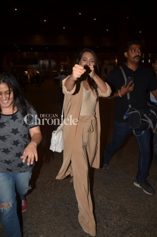 Sonakshi Sinha, who's gearing up for the release of her action-drama, 'Akira', was snapped leaving the airport.