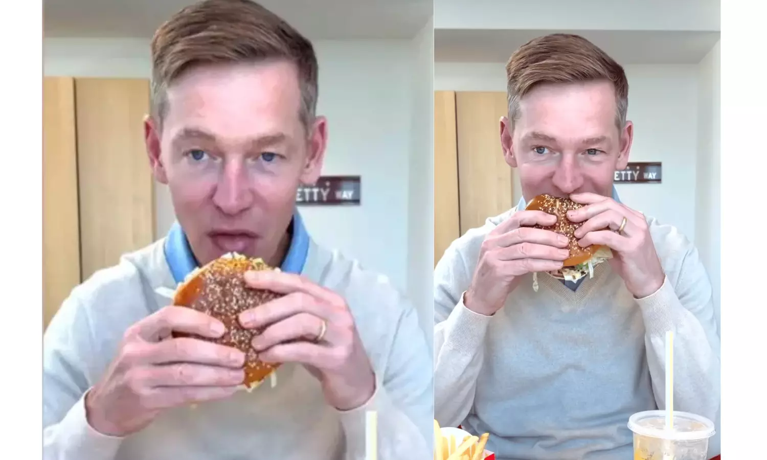 In the video clip, Kempczinski introduces the "Big Arch burger" as a hearty sandwich with two quarter-pound beef patties, white cheddar, crispy onions, lettuce, pickles and a signature tangy “Big Arch” sauce. He calls it a “product” rather than simply a burger, a language many people found stiff and corporate. When the taste test begins, he struggles to take a bite and ends up making only a tiny dip on the bun, saying it's “so good”, but the awkward delivery and minimal bite sparked ridicule.