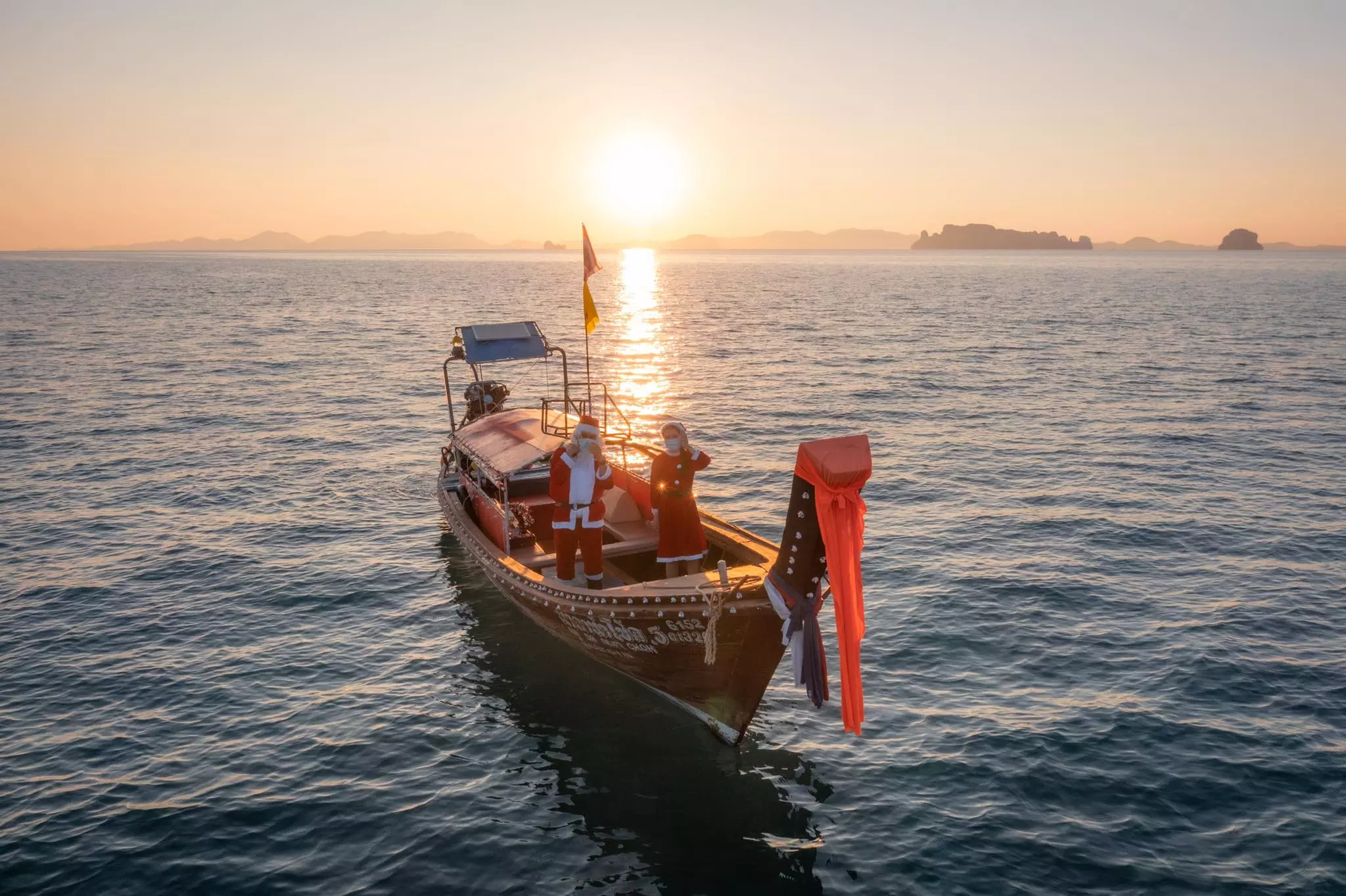 One of the most magical experiences at Phulay Bay is during Christmas, when Santa comes by long-tail boat at sunset! The day starts with a festive breakfast, children's workshops throughout the day, and ends with a spectacular Christmas Eve dinner beneath the stars at Jampoon—a delightful blend of traditional holiday flavours mixed with the tropical twist.