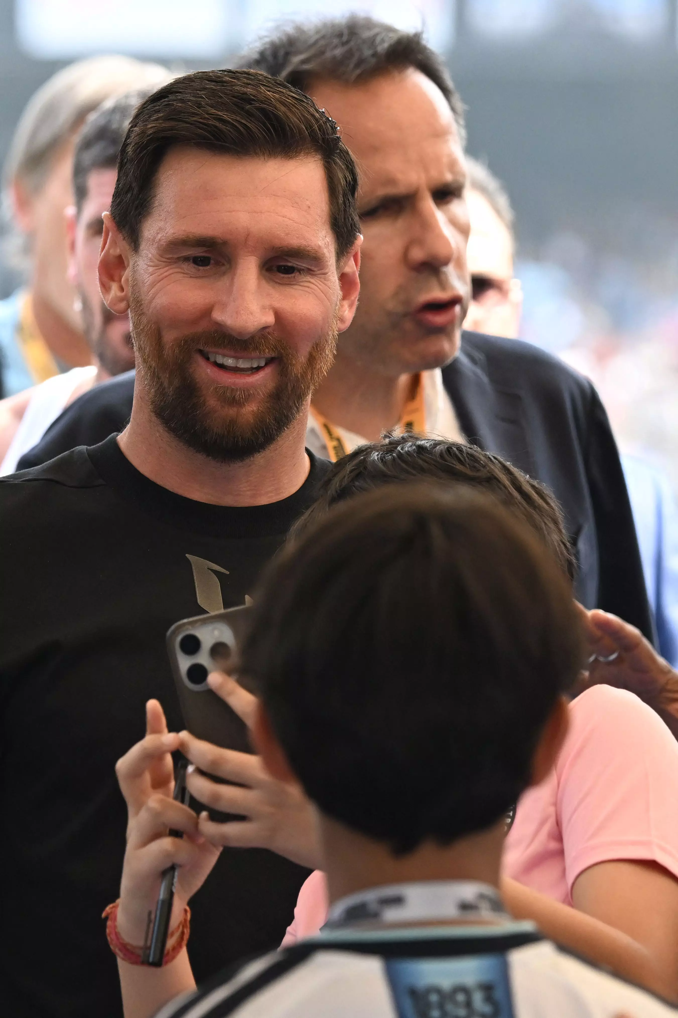 A fan takes a selfie with Inter Miami's Argentine forward #10 Lionel Messi (L) at the Salt Lake Stadium in Kolkata on December 13, 2025. Thousands of fans packed into a stadium in eastern India on December 13 to cheer on Lionel Messi as the football legend unveiled a 21-metre (70-foot) statue of himself.- AFP